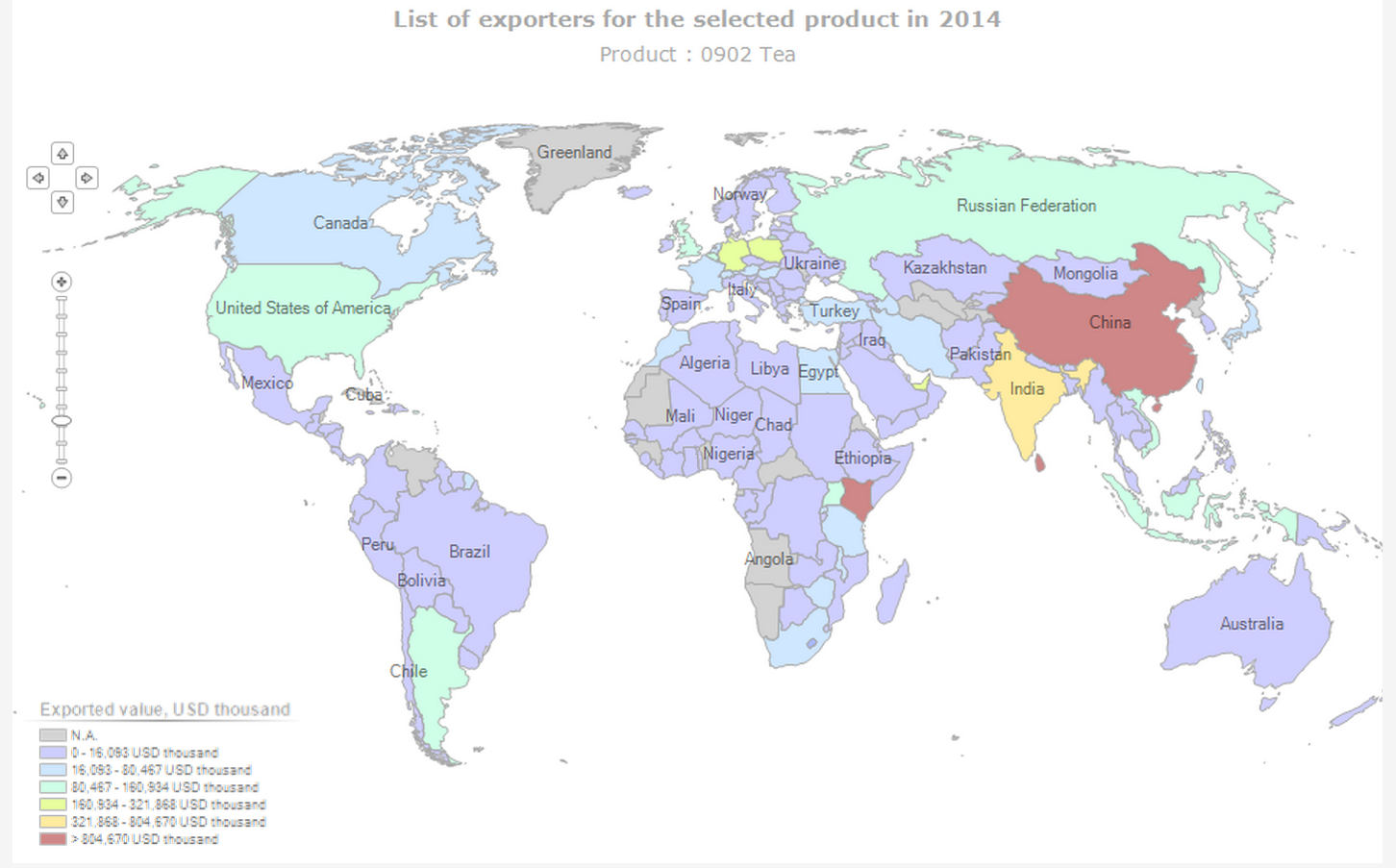 This map shows the top 5 countries that produce tea and the countries they export them to (trade with), as well as the top 5 countries to export tea products.